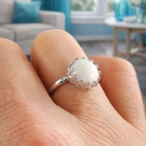 Une bague de lait maternel est un bijou réalisé à partir de quelques millilitres de lait maternel, soigneusement stabilisés grâce à une méthode spécifique. Ce procédé préserve la couleur, la texture et l’essence du lait pour en faire une perle lactée unique. Chaque bijou est conçu pour raconter une histoire : celle de votre parcours d’allaitement et de vos souvenirs les plus précieux.