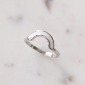 A breast milk ring is a piece of jewelry made from a few milliliters of breast milk. The milk is carefully stabilized using a special process to preserve its color, texture and essence. The resulting bead is a unique, milky pearl. Each piece of jewelry is designed to tell the story of your breastfeeding journey and to include your most precious memories.