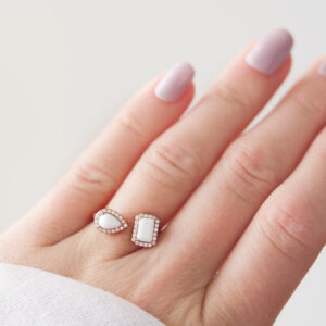 A breast milk ring is a piece of jewelry made from a few milliliters of breast milk. The milk is carefully stabilized using a special process to preserve its color, texture and essence. The resulting bead is a unique, milky pearl. Each piece of jewelry is designed to tell the story of your breastfeeding journey and to include your most precious memories.