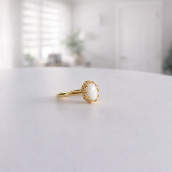 This beautiful breast milk ring has a bright finish and clean, royalty styling.
