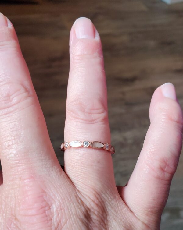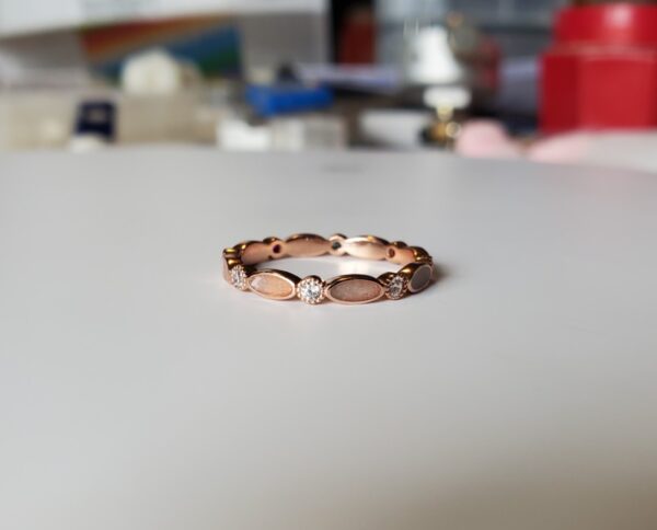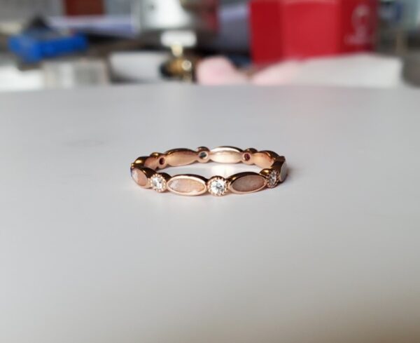 Your oval-shaped and zircons go all around this simple and delicate ring.
