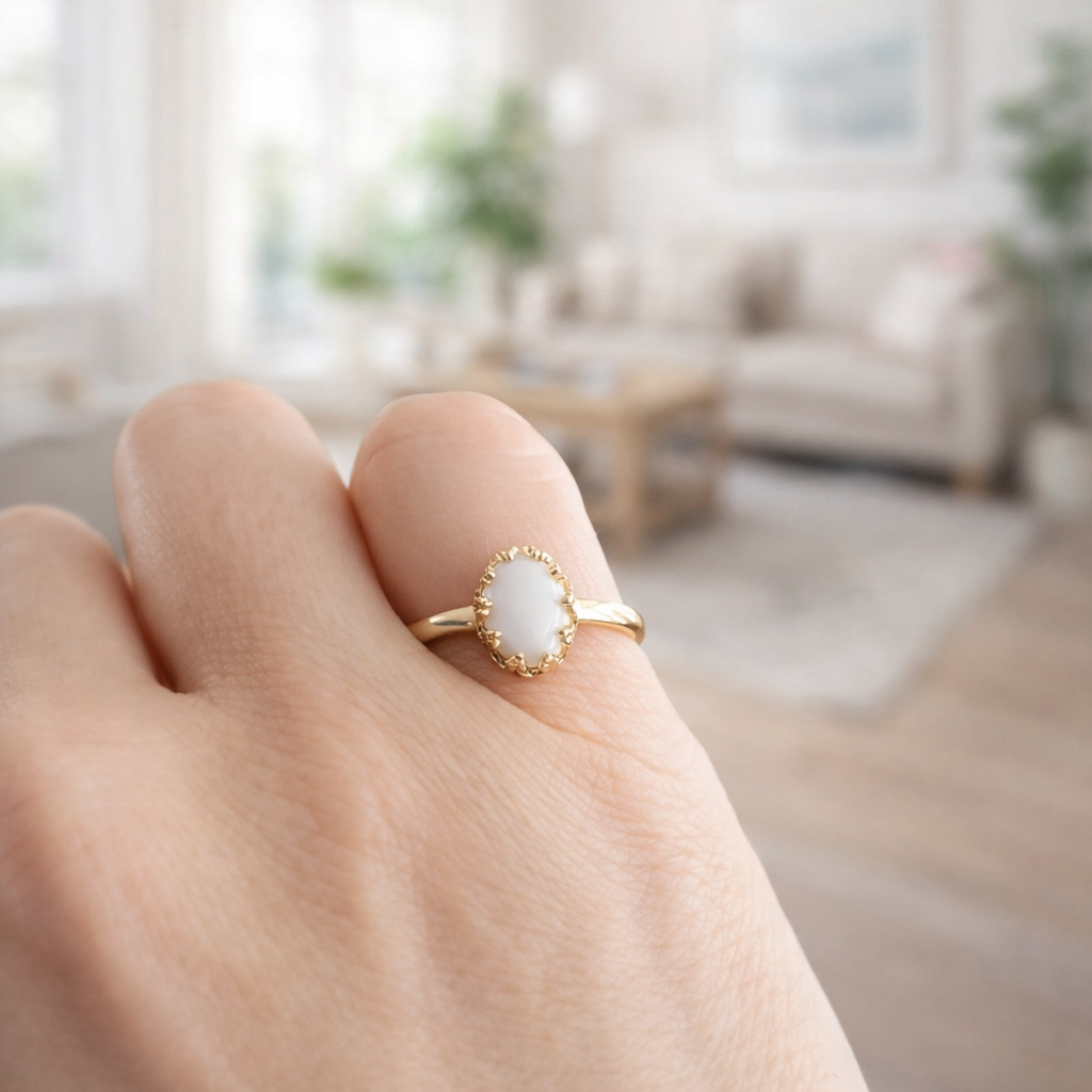 Cette magnifique Bague Lait Maternel a une finition brillante et un style digne de la royauté!
