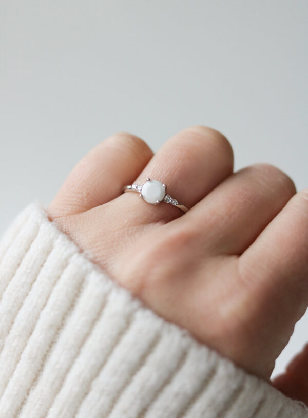 Le Diamant de lait dans cet anneau mesure environ 6 mm de large.