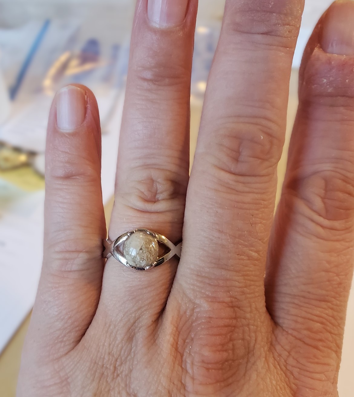 - Cendres : J’ai besoin d’une cuillère à thé environ pour la quantité. La quantité non utilisée vous sera retournée avec votre bijou terminé.