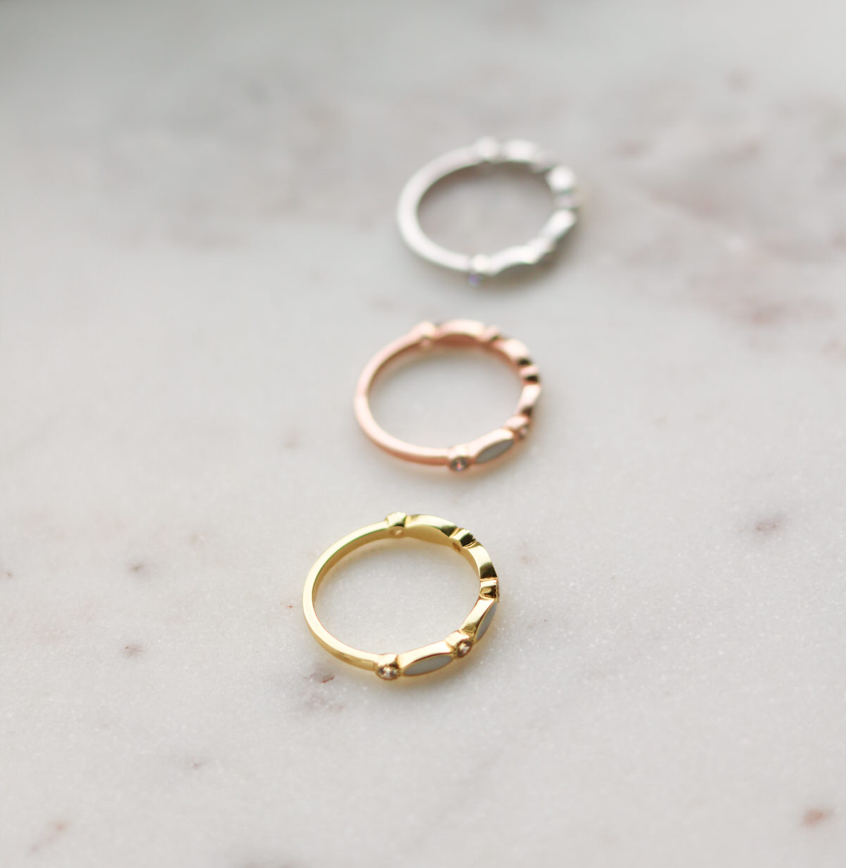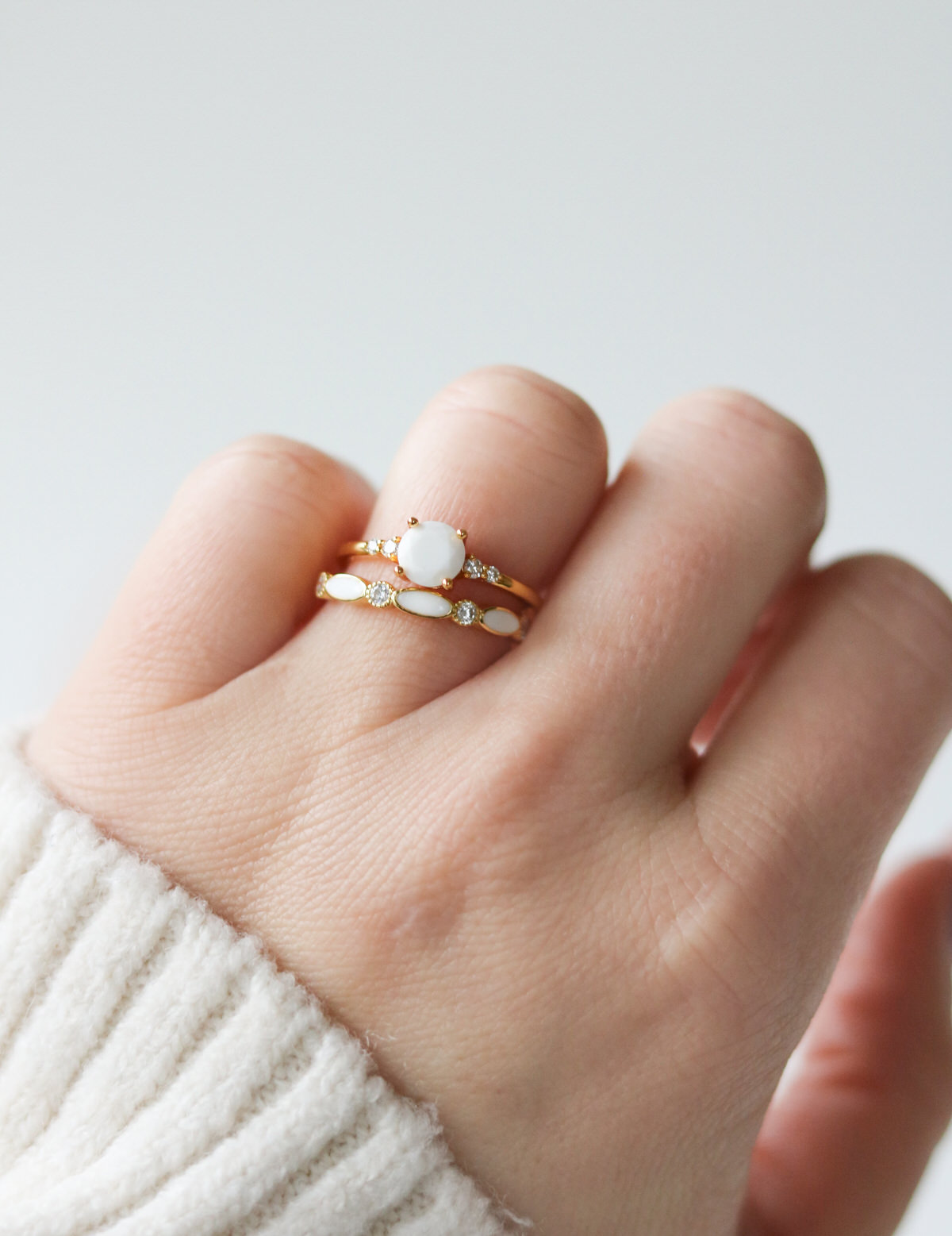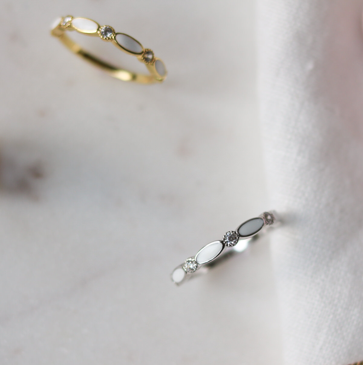 Votre lait maternel en forme d’oval et les zircons font soit le tour de cette bague simple et délicate (forme éternité) ou sur la moitié supérieure (forme demi-éternité).