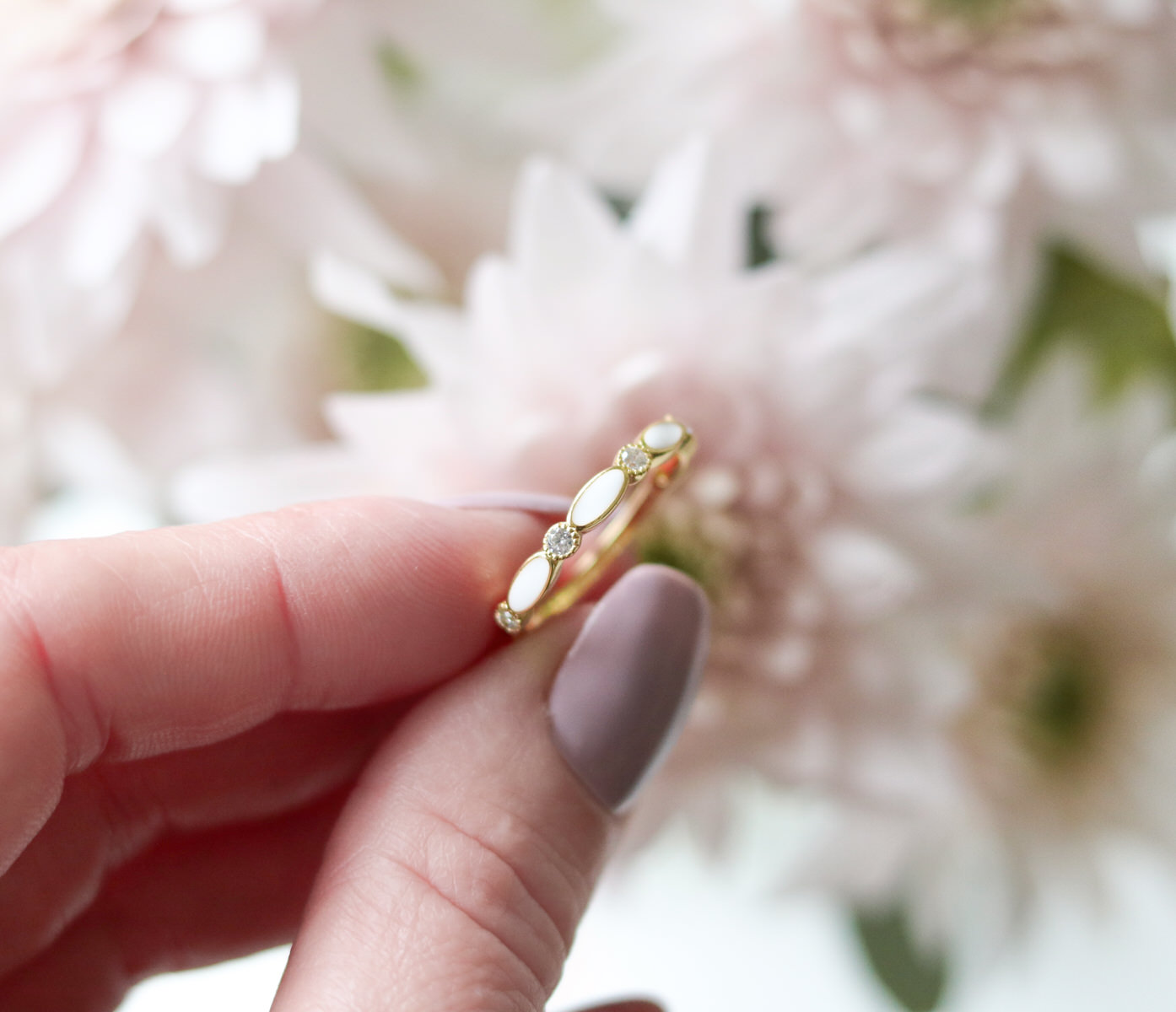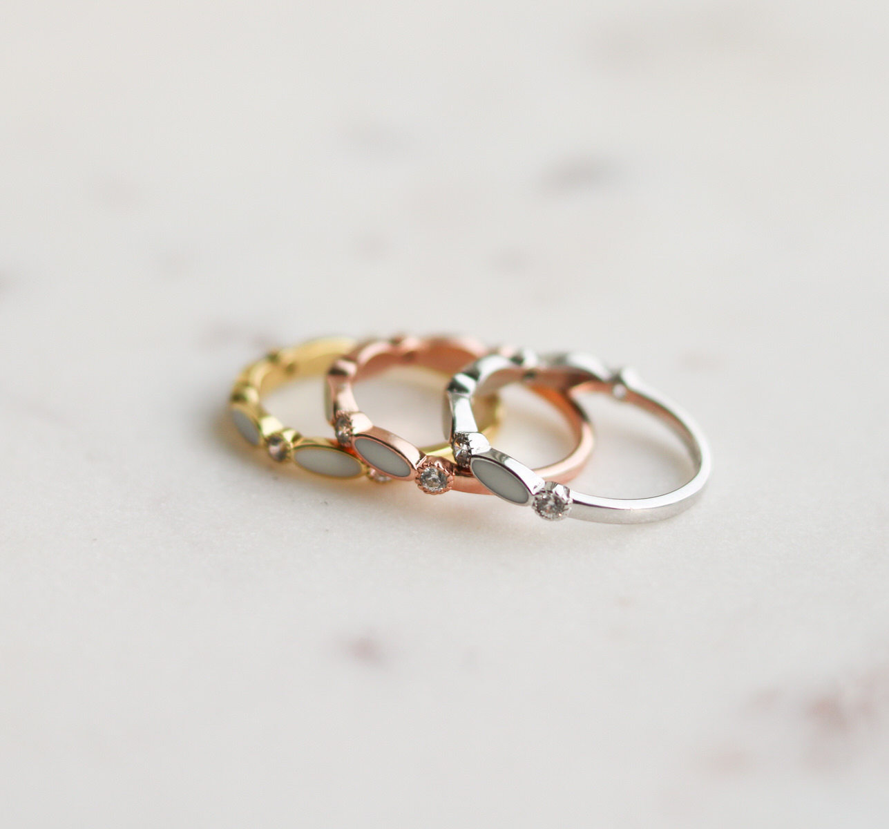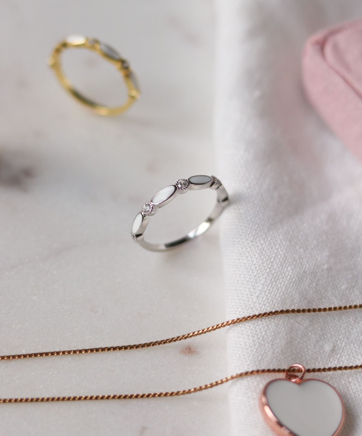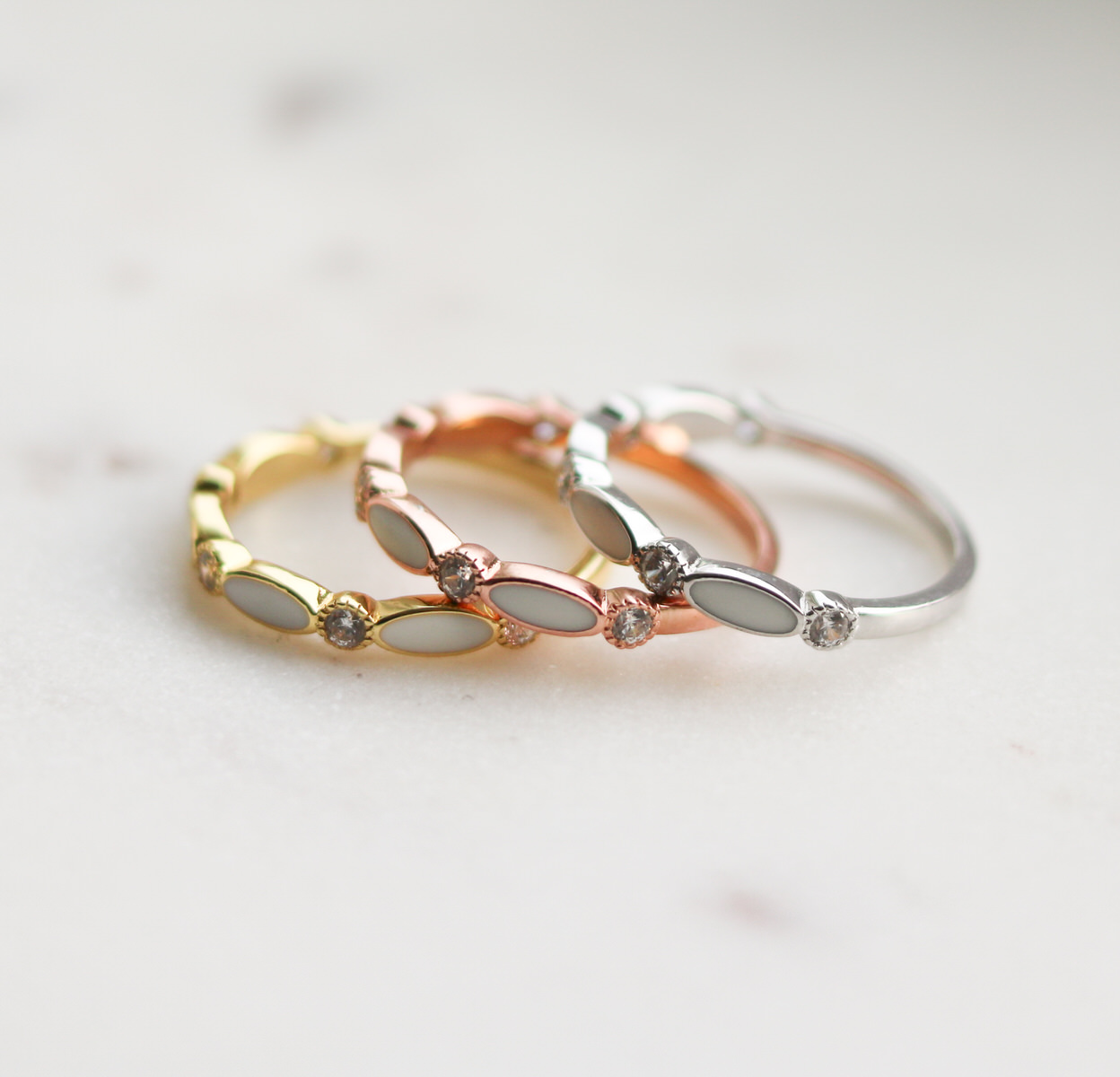 Votre lait maternel en forme d’oval et les zircons font soit le tour de cette bague simple et délicate (forme éternité) ou sur la moitié supérieure (forme demi-éternité).