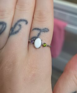 Cette superbe bague vous permet d’avoir, en plus de votre “pierre” Lait Maternel, deux pierres de naissance.