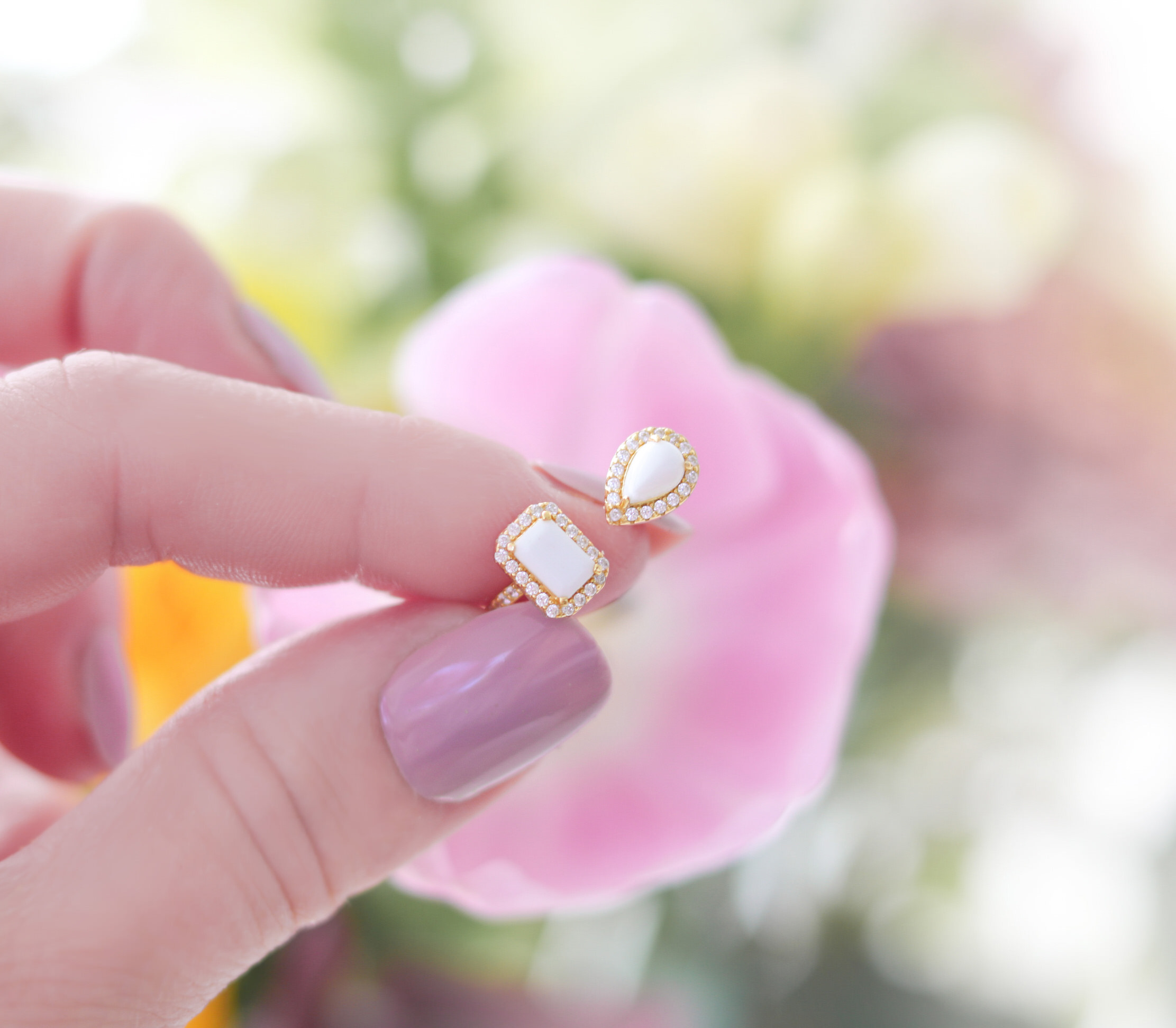 La goutte et le diamant de forme rectangulaire de lait maternel mesure environ 6×4 mm chacun.